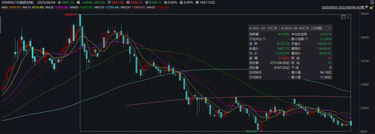 截至本周五,2021年2月见顶后的中证申万医药生物指数,目前跌幅接近48%。相信很多投资者都想问一句:这板块见底了吗?什么时候反弹?