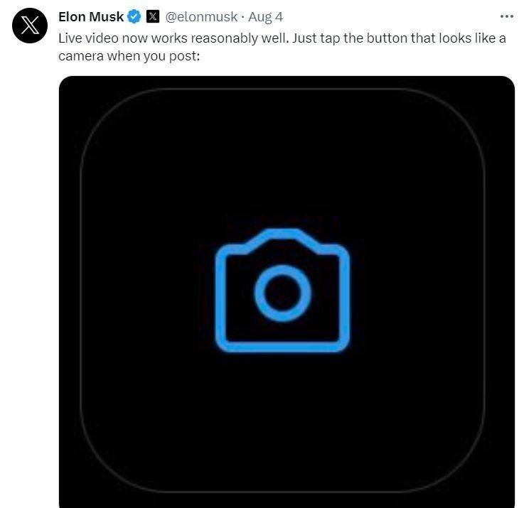 整个直播持续了 53 秒,随后他在 X 发文:“实时视频(直播)现在效果相当好。只需在发帖时点击看起来像相机的按钮即可。”