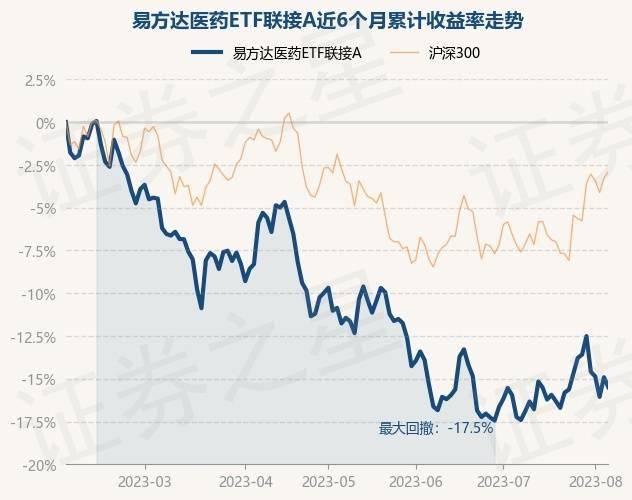 8月4日,易方达医药ETF联接A最新单位净值为1.0521元,累计净值为1.0521元,较前一交易日下跌0.68%。历史数据显示该基金近1个月上涨0.08%,近3个月下跌6.42%,近6个月下跌15.49%,近1年下跌12.5%。该基金近6个月的累计收益率走势如下图: