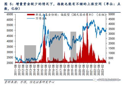 (2)如果增量资金偏少,最大上涨空间可以有多大?目前投资者对上涨空间存在比较广泛的担忧是,增量资金偏少的情况下,指数上涨空间不大。但我们认为,即使是存量资金,指数的空间也是不小的。A股历史上增量资金偏少的情况下,指数在估值底部区域可以有20%-30%左右的腾挪空间。2012年底-2013年、2016年1月底-2017年、2019年1-8月均是在增量资金偏少的情况下,指数出现的上涨。